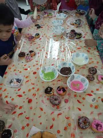 elain itu, staf PEDI Sg Bandung telah mengajar para pelajar bagaimana cara untuk membuat donut serta mendekorasi donut yang telah digoreng. Pelajar-pelajar disediakan glaze donut serta manik untuk mendekorasi donut masing-masing. Staf PEDI telah menunjukkan contoh kepada pelajar bagaimana untuk membuat dekorasi donut. Pelajar-pelajar diminta untuk membawa balik hasil kerja masing-masing.