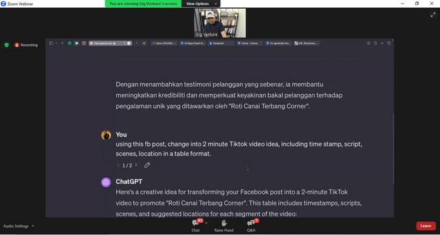 Selain itu juga webinar ini memberi penerangan bagaimana ChatGPT dapat menjimatkan masa dan tenaga dengan mengautomasikan proses. Para peserta webinar juga telah diajar cara untuk menggunakan ChatGpt sebagai khidmat pelanggan yang pantas dan berkesan.