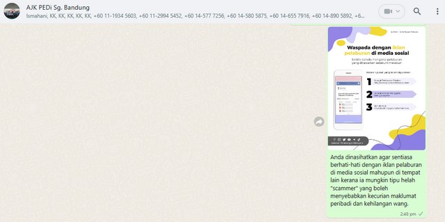 16 Disember 2023 | Aktiviti TerkiniPada 15 Disember 2023 yang lalu, pihak PEDi Sg. Bandung telah berkongsi mengenai Klik Dengan Bijak, “Waspada Dengan Iklan Pelaburan di Media Sosial”.