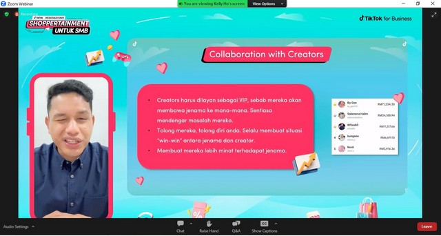 Webinar ini diadakan secara dalam talian melalui aplikasi Zoom. Tujuan webinar ini diadakan untuk berkongsi kepada usahawan bagaimana teknik dan serta idea kreatif berkaitan pembinaan kandungan yang menarik, penstriman langsung, dan strategi iklan beli-belah dari pakar industri.