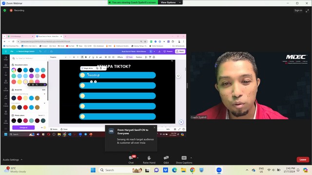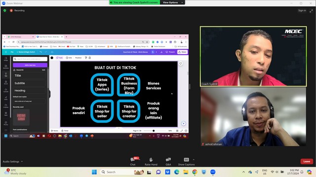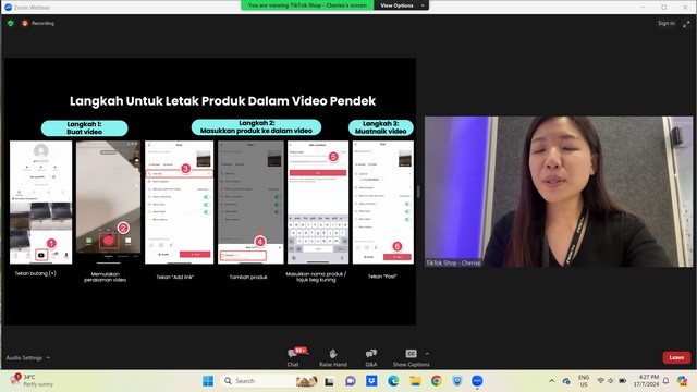 18 Julai 2024 | Aktiviti TerkiniPada 17 Julai 2024 (Selasa), petugas NADI Sg. Bandung telah menghadiri webinar secara online melalui Zoom Meeting. Webinar ini merupakan perkongsian mengenai bisnes shoppertainment yang semakin popular melalui platform Tiktok Shop.