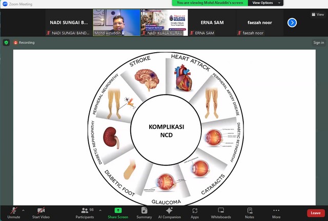23 Oktober 2024 | Aktiviti TerkiniPada 22 Oktober 2024, petugas NADI telah menyertai sesi webinar dalam talian menggunakan platform Zoom. Dalam webinar ini menerangkan berkaitan dengan jenis-jenis penyakit tidak berjangkit dan bagaimana penjagaan penyakit tidak berjangkit.