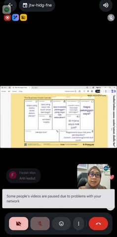 12 Oktober 2025 | Aktiviti TerkiniPada 11 Oktober 2025, dua orang peserta dari NADI Sungai Bandung telah menyertai Webinar KidVenture Cohort 6 yang dijalankan secara dalam talian melalui platform Google Meet. Sesi ini berfokus kepada topik Pelan Perniagaan Pintar Saya, bertujuan memberi pendedahan kepada pelajar tentang asas keusahawanan dan kemahiran merancang perniagaan secara kreatif dan strategik.