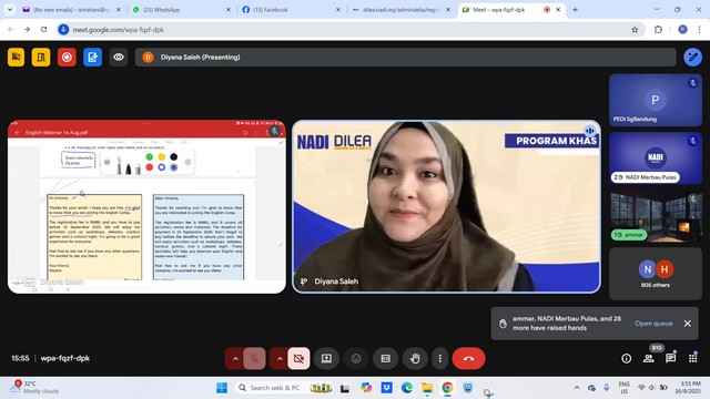 Pada 16 Ogos 2025 (Sabtu), seorang pelajar dari NADI Sungai Bandung telah menyertai satu Webinar Berkala Bahasa Inggeris Edisi ke-4 dengan topik “Pengukuhan Format & Persediaan UASA”. Webinar ini telah dianjurkan khusus bagi membantu pelajar Tingkatan 1 hingga Tingkatan 5 membuat persediaan menghadapi penilaian Ujian Akhir Sesi Akademik (UASA).