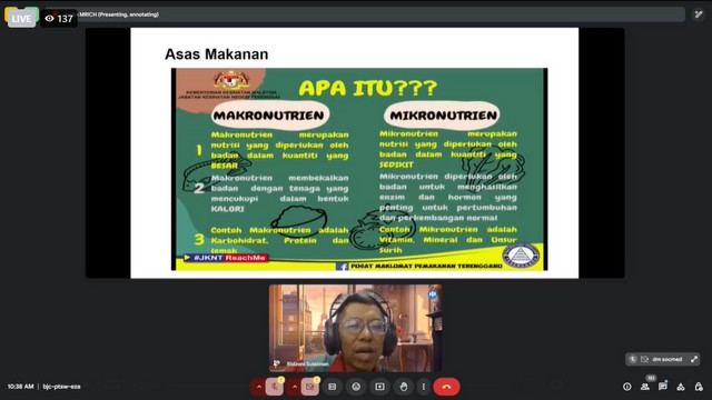 5 Februari 2025 | Aktiviti TerkiniPada 04 Februari 2025, petugas NADI Sungai Bandung telah menyertai Webinar Kesejahteraan Kendiri yang bertajuk Makan Dengan Bijak Kenali Makanan Anda secara dalam talian menggunakan Google Meet. Untuk sesi kali ini, penceramah yang Pakar Diet iaitu Haji Ridzoni Sulaiman akan menerangkan berkaitan dengan kenali makanan anda.