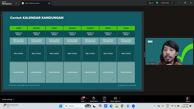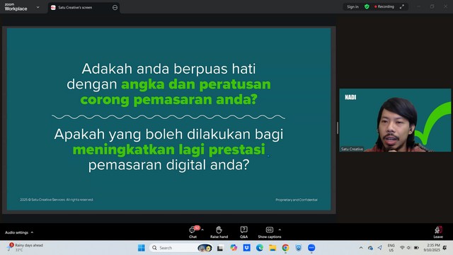 Selain itu, peserta juga dilatih untuk mengenal pasti indikator prestasi utama (KPI) dalam pemasaran digital, serta bagaimana membuat penyesuaian segera sekiranya sesuatu strategi tidak mencapai sasaran. Perbincangan turut disertakan dengan contoh kes sebenar bagi memudahkan pemahaman.