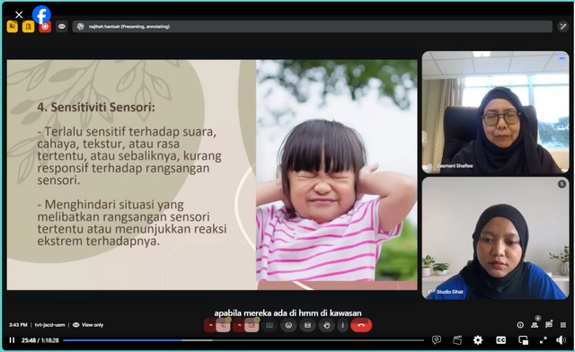17 Julai 2025 | Aktiviti TerkiniPada 16 Julai 2025, seorang peserta telah menyertai Webinar Kesejahteraan Kendiri yang bertajuk "Saya Tak Nak Label Anak Saya Autisme – Tapi Kenapa Diagnosis Itu Penting". Webinar ini bertujuan untuk meningkatkan kesedaran ibu bapa dan penjaga mengenai kepentingan diagnosis awal dalam kes perkembangan kanak-kanak, khususnya yang menunjukkan tanda-tanda spektrum autisme. Webinar membincangkan kebimbangan biasa ibu bapa terhadap ‘label’ autisme, serta menjelaskan mengapa pengesanan awal boleh membuka jalan kepada intervensi yang lebih berkesan dan peluang perkembangan yang lebih baik untuk anak-anak.