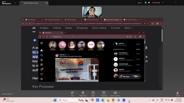 25 Julai 2025 | Aktiviti TerkiniPada 24 Julai 2025, 2 orang peserta dari NADI Sungai Bandung telah menyertai Webinar Cybersecurity yang bertajuk Keselamatan Akaun Media Sosial secara atas talian. Webinar ini memberi tumpuan kepada aspek keselamatan siber yang berkaitan dengan penggunaan akaun media sosial seperti Facebook, Instagram, TikTok, dan lain-lain. Dalam era digital masa kini, akaun media sosial sering menjadi sasaran utama penjenayah siber yang ingin mencuri maklumat peribadi, menyebarkan scam, atau mengambil alih akaun untuk tujuan tidak bertanggungjawab.