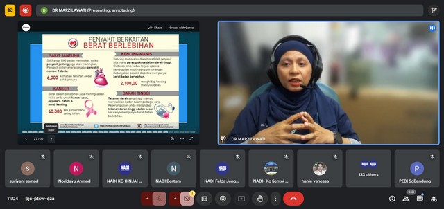 1 Februari 2025 | Aktiviti TerkiniPada 31 Januari 2025 (Jumaat), petugas NADI telah menyertai Webinar Kesejahteraan Kendiri yang bertajuk Obesiti “Kesan Gaya Hidup atau Gejala Penyakit Moden”. Sesi webinar kali ini bersama Dr. Marzilawati Abd Rahman, Pakar Perunding Perubatan Akut Dalaman.