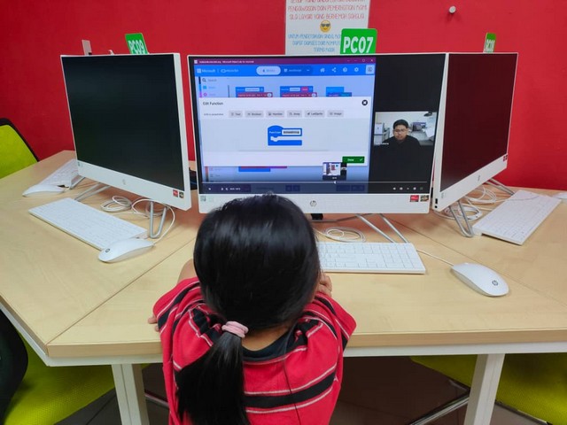 Semasa sesi berlangsung, peserta mempelajari cara mengawal pergerakan robot, termasuk bergerak ke hadapan, ke belakang, membuat pusingan, dan mengubah arah dengan menggunakan blok arahan dalam MakeCode. Mereka diberi peluang untuk mencuba dan menguji arahan yang telah diprogramkan bagi melihat bagaimana robot bertindak balas terhadap pengaturcaraan tersebut. Aktiviti ini membantu peserta memahami hubungan antara arahan yang diberikan dan gerakan robot secara praktikal.