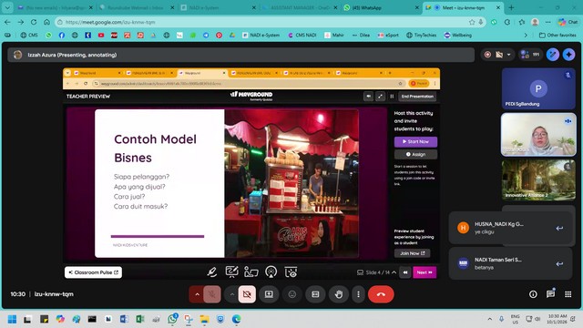 11 Januari 2026 | Aktiviti TerkiniPada 10 Januari 2026, seorang peserta telah mengikuti Webinar Kidsventure Pelan Perniagaan Mini 1 yang diadakan secara dalam talian melalui Google Meet bertempat di NADI Sungai Bandung. Webinar ini bertujuan memberi pendedahan kepada peserta mengenai asas perancangan perniagaan menggunakan pendekatan Business Model Canvas (BMC).