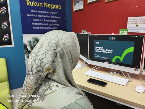Pada 3 Februari 2026, seorang peserta telah mengikuti Webinar eKelas Usahawan Modul 3 yang bertajuk “AI untuk Mencipta Kandungan” yang diadakan secara dalam talian di NADI Sungai Bandung. Modul ini bertujuan memperkenalkan usahawan kepada penggunaan teknologi Kecerdasan Buatan (AI) dalam penghasilan kandungan digital yang kreatif, menarik dan berkesan.