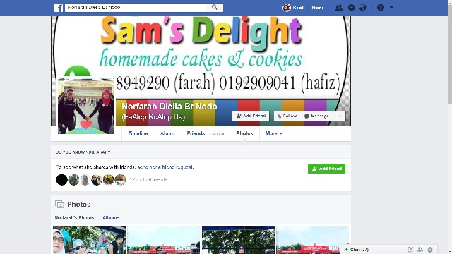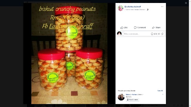 Dengan mempromosikan produk beliau di sosial media sahaja, Puan Asfa memperoleh lebih pelangan dengan berkongsi status beliau di group-group di dalam Facebook. Dihujung jari sahaja beliau sudah boleh mendapatkan pasaran yang banyak untuk kuih dram beliau. Sebarang pertanyaan atau tempahan, hubungi Puan Asfarina Deman di Facebook www.facebook.com/easfarina atau di WhatsApp di talian wasap.my/60148789245.