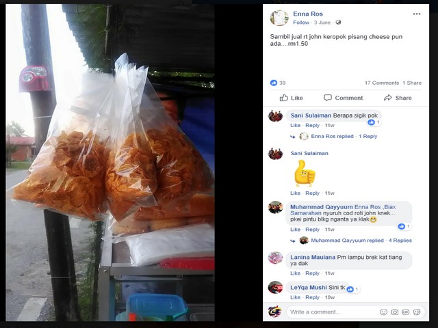 WhatsApp dan Facebook menjadi platform beliau untuk mempromosikan hasil jualan beliau. Dengan pendekatan yang Puan Hailna lakukan ini menjadikan produk beliau menjadi tarikan orang luar selain dari penduduk sekitar kawasan kediamannya. Beliau menerima lebih banyak tempahan daripada yang sebelum ini dengan adanya media sosial. Untuk tempahan kerepek dang maklumat lebih lanjut mengenai jualan beliau boleh menhubungi Puan Hailna Rose di Facebook, www.facebook.com/Hailna dan WhatsApp, wasap.my/60105999290