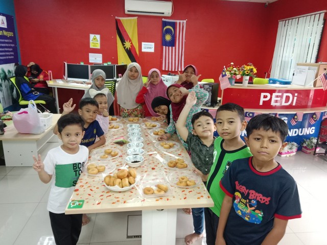 elain itu, staf PEDI Sg Bandung telah mengajar para pelajar bagaimana cara untuk membuat donut serta mendekorasi donut yang telah digoreng. Pelajar-pelajar disediakan glaze donut serta manik untuk mendekorasi donut masing-masing. Staf PEDI telah menunjukkan contoh kepada pelajar bagaimana untuk membuat dekorasi donut. Pelajar-pelajar diminta untuk membawa balik hasil kerja masing-masing.