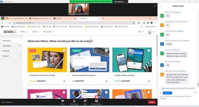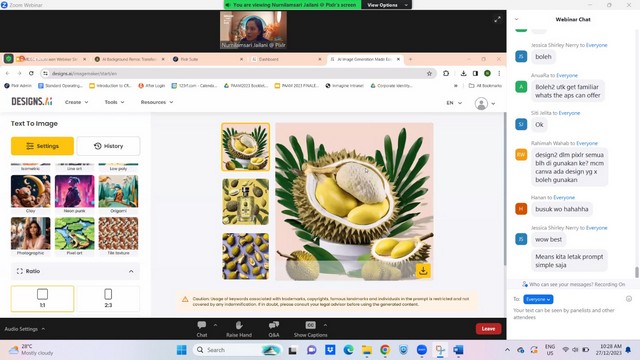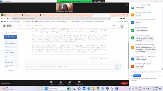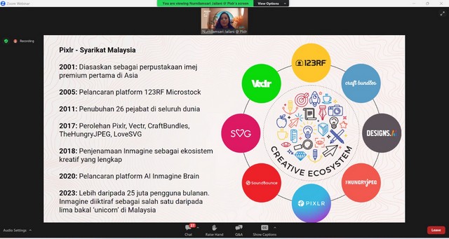 28 Disember 2023 | Aktiviti TerkiniPada 27 Disember 2023 yang lalu, staf PEDi Sg. Bandung telah menyertai webinar strategi Cipta Bahan Promosi dengan AI: Bijak, Cepat dan Mudah secara atas talian menggunakan aplikasi Zoom Meeting. Webinar ini merupakan anjuran daripada Pihak MDEC Eusahawan hasil kolaborasi dengan PIXLR. Dalam sesi webinar ini berkongsi bagaimana AI menjadikan Promosi secara Bijak, Cepat dan Mudah.