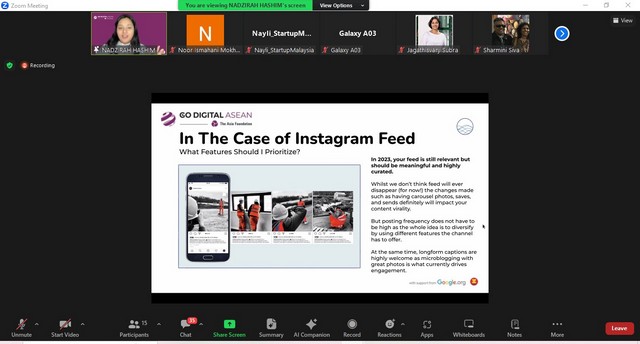 3 Disember 2023 | Aktiviti TerkiniPada 02 Disember 2023 (Sabtu), staf Pedi Sg. Bandung telah menyertai sesi Mastering The Art of Increasing Engagement for your Social Media Channel melalui aplikasi Zoom. Webinar ini dianjurkan oleh Go Digital Asean.