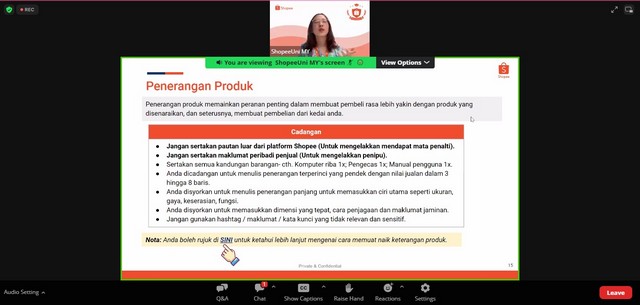 9 November 2023 | Aktiviti TerkiniPada 08 November 2023 (Rabu), staf Pedi Sg Bandung telah menyertai Webinar Shopee X Pupuk: Optimukan Penyenaraian Produk Anda dalam talian melalui aplikasi Zoom. Webinar ini dianjurkan adalah kerjasama daripada pihak Shopee dan MCMC untuk kempen PUPUK 2023.