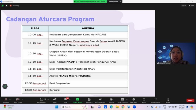 7 Jun 2024 | Aktiviti TerkiniPada 6 Jun 2024 (Khamis), petugas NADI telah menghadiri taklimat secara online melalui Zoom Meeting. Taklimat ini diadakan bagi memberikan penerangan dan bagaimana cara pelaksanaan “Kenali NADI Bersama Komuniti MADANI”.