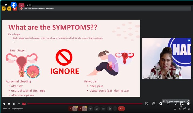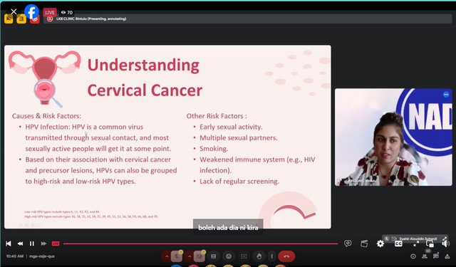 6 November 2024 | Aktiviti TerkiniPada 05 November 2024 (Selasa), petugas NADI telah menyertai sesi webinar dalam talian menggunakan Google Meet. Dalam webinar ini menerangkan berkaitan dengan kanser serviks atau kanser pangkal Rahim. Kanser serviks atau kanser pangkal rahim merupakan antara penyakit kanser yang mencatatkan kadar kematian tinggi dalam kalangan wanita. Di Malaysia sahaja, kanser ini menjadi kanser ketiga paling tinggi dialami oleh wanita. Kanser serviks adalah kanser yang boleh disaring dengan menggunakan kaedah saringan yang mudah dan ia dapat mengurangkan kadar kematian dalam kalangan wanita. Lakukan saringan awal untuk mengesan kanser serviks seperti ujian Pap Smear atau ujian HPV. Dua ujian saringan ini boleh membantu mencegah kanser serviks atau mengesannya dengan lebih awal.