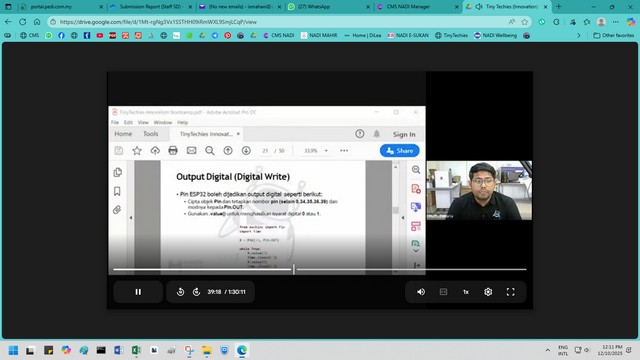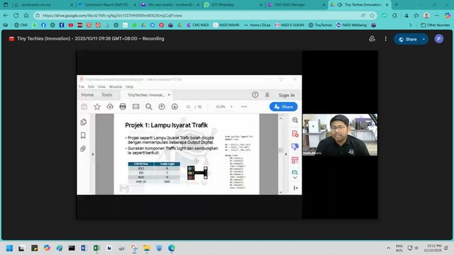 13 Oktober 2025 | Aktiviti TerkiniPada 12 Oktober 2025, seorang pelajar sekolah menengah telah menyertai Bengkel Tiny Techies: IoT Inovasi Sesi 2 yang secara atas talian melalui platform Google Meet di NADI Sungai Bandung. Bengkel ini merupakan sambungan daripada sesi pertama dan memberi tumpuan kepada pembelajaran dalam bidang Internet of Things (IoT).
