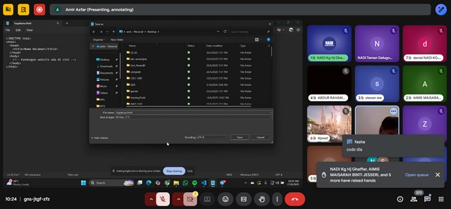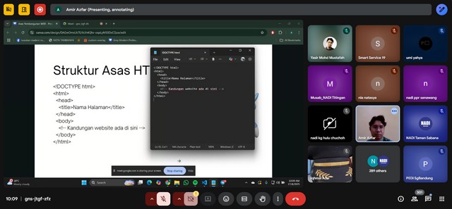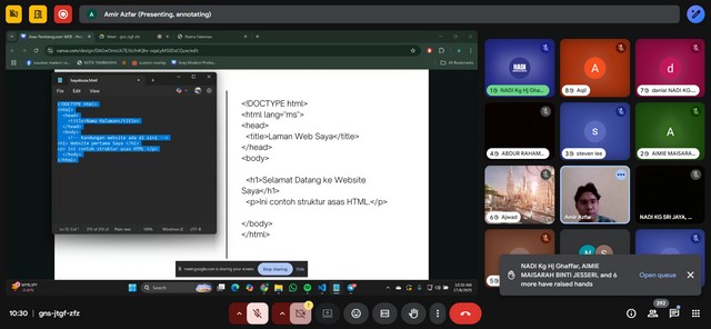Peserta telah didedahkan dengan struktur asas HTML, fungsi tag utama, serta cara mudah menghasilkan laman web ringkas. Penceramah menekankan bahawa penguasaan HTML merupakan langkah pertama yang penting sebelum mempelajari bahasa pengaturcaraan lain seperti CSS dan JavaScript.