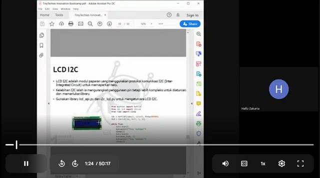 23 November 2025 | Aktiviti TerkiniPada 22 November 2025, seorang peserta telah menyertai Bengkel Mahir IoT Inovasi Sesi 5 secara dalam talian melalui Google Meet. Bengkel ini memberi pendedahan lanjutan dalam bidang Internet of Things (IoT) dan merupakan sambungan daripada sesi-sesi sebelumnya.