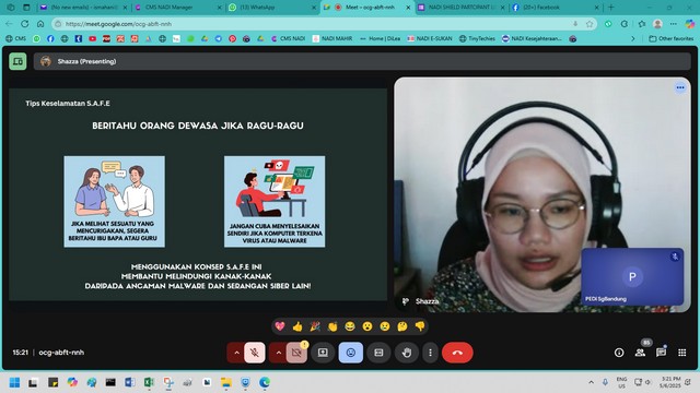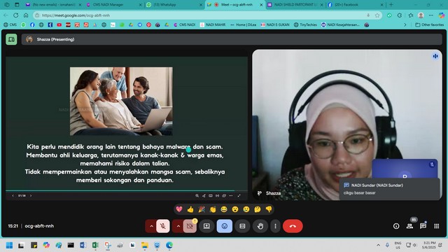 6 Jun 2025 | Aktiviti TerkiniNADI X Awareness telah mengadakan taklimat dalam talian yang bertajuk “Perisian Merbahaya”. Taklimat NADI Safe & Shield adalah satu inisiatif yang bertujuan untuk meningkatkan lagi kesedaran dan pengetahuan masyarakat terutama sekali kanak-kanak mengenai keselamatan dalam dunia digital terutama berkenaan media sosial. Pada Khamis yang lepas, seorang peserta dari NADI Sungai Bandung telah menyertai taklimat tersebut. Taklimat ini memberi kesedaran apa yang dimaksudkan dengan malware, bagaimana malware boleh menceroboh ke dalam satu peranti, bagaimana malware berfungsi dan cara-cara mencegahnya.