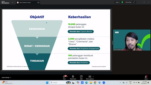 Selain itu, peserta juga dilatih untuk mengenal pasti indikator prestasi utama (KPI) dalam pemasaran digital, serta bagaimana membuat penyesuaian segera sekiranya sesuatu strategi tidak mencapai sasaran. Perbincangan turut disertakan dengan contoh kes sebenar bagi memudahkan pemahaman.