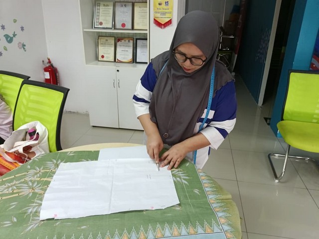21 Ogos 2025 | Aktiviti TerkiniPada 20 Ogos 2025 (Rabu), dalam sesi Mahir Jahit minggu kelima, peserta diajar cara menggunting pola apron dengan betul. Peserta belajar langkah demi langkah bermula daripada melakar pola hingga memotong kain mengikut ukuran. Aktiviti ini memberi peluang kepada peserta untuk memahami asas menjahit serta menambah keyakinan dalam menghasilkan apron sendiri.