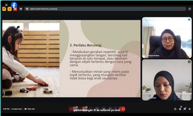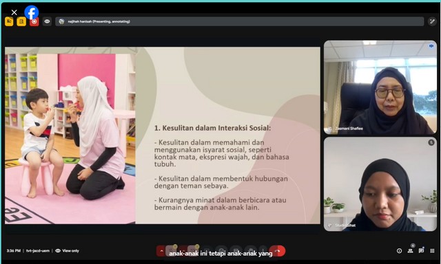 17 Julai 2025 | Aktiviti TerkiniPada 16 Julai 2025, seorang peserta telah menyertai Webinar Kesejahteraan Kendiri yang bertajuk "Saya Tak Nak Label Anak Saya Autisme – Tapi Kenapa Diagnosis Itu Penting". Webinar ini bertujuan untuk meningkatkan kesedaran ibu bapa dan penjaga mengenai kepentingan diagnosis awal dalam kes perkembangan kanak-kanak, khususnya yang menunjukkan tanda-tanda spektrum autisme. Webinar membincangkan kebimbangan biasa ibu bapa terhadap ‘label’ autisme, serta menjelaskan mengapa pengesanan awal boleh membuka jalan kepada intervensi yang lebih berkesan dan peluang perkembangan yang lebih baik untuk anak-anak.