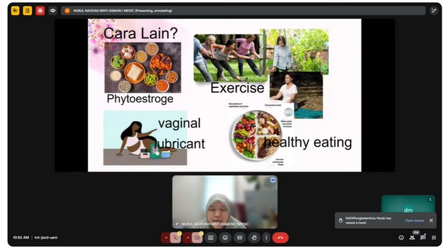 Menopaus sering dianggap sebagai satu penamat kepada fasa kesuburan, namun sebenarnya ia adalah permulaan kepada satu episod kehidupan baru yang boleh dilalui dengan lebih sihat dan bermakna. Dalam webinar ini, para peserta didedahkan kepada maklumat mengenai simptom menopaus, kesan fizikal dan emosi, serta langkah-langkah penjagaan diri dari aspek pemakanan, senaman dan sokongan emosi.