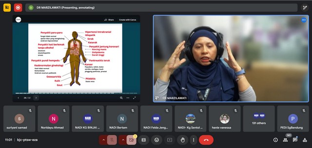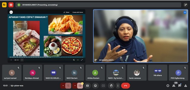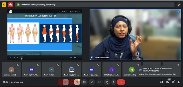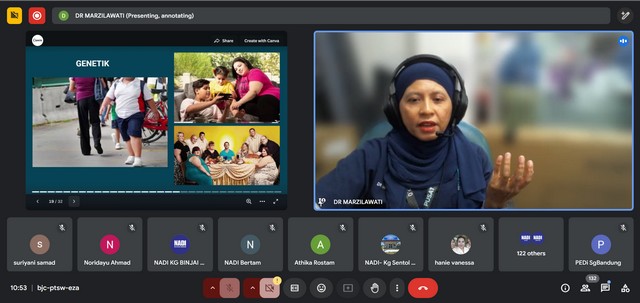 1 Februari 2025 | Aktiviti TerkiniPada 31 Januari 2025 (Jumaat), petugas NADI telah menyertai Webinar Kesejahteraan Kendiri yang bertajuk Obesiti “Kesan Gaya Hidup atau Gejala Penyakit Moden”. Sesi webinar kali ini bersama Dr. Marzilawati Abd Rahman, Pakar Perunding Perubatan Akut Dalaman.