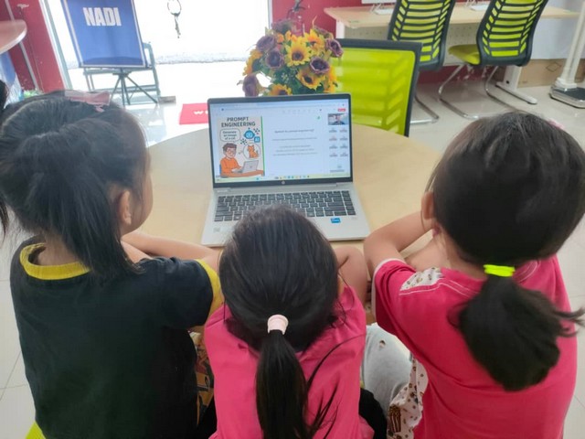Sepanjang sesi ini, para pelajar didedahkan kepada asas penggunaan AI generatif (Gen AI) dalam membantu proses pembelajaran dan penghasilan karya kreatif seperti penulisan, lukisan digital, dan idea inovatif. Mereka turut mempelajari cara menulis prompt yang berkesan bagi mendapatkan hasil terbaik daripada aplikasi AI.