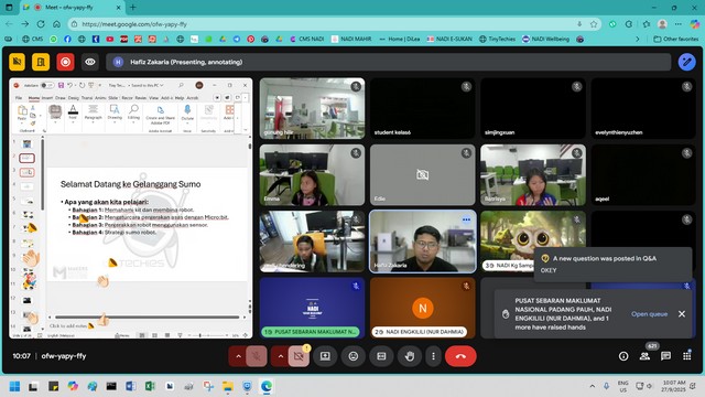 28 September 2025 | Aktiviti TerkiniPada 27 September 2025, telah berlangsung Bengkel Tiny Techies – Sumo Robot di NADI Sungai Bandung dengan penyertaan seramai dua orang peserta. Program ini dianjurkan khusus untuk murid sekolah rendah dengan tujuan memberi pendedahan awal mengenai dunia robotik serta memperkenalkan konsep asas yang berkaitan dengan pembangunan dan kawalan robot.