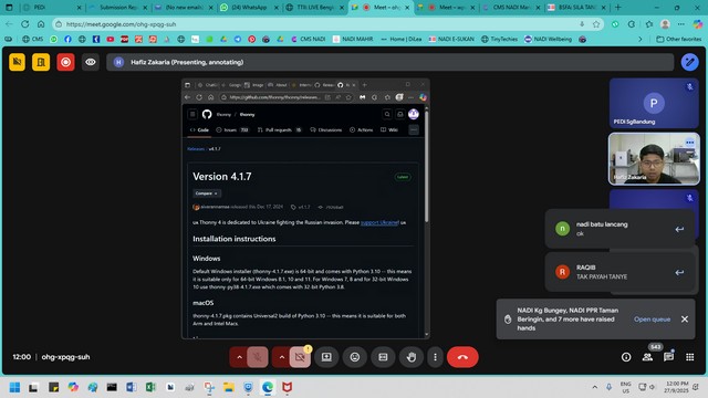 28 September 2025 | Aktiviti TerkiniPada 27 September 2025, seorang peserta daripada NADI Sungai Bandung telah menyertai Bengkel Mahir Tiny Techies (IoT Inovasi) yang memberi tumpuan kepada pembelajaran menggunakan Kit Inovasi IoT Tiny Techies. Antara perkara utama yang dipelajari ialah cara memuat turun dan memasang Thonny IDE, iaitu perisian yang digunakan untuk menulis, menguji, dan memuat naik kod MicroPython ke papan mikropengawal.