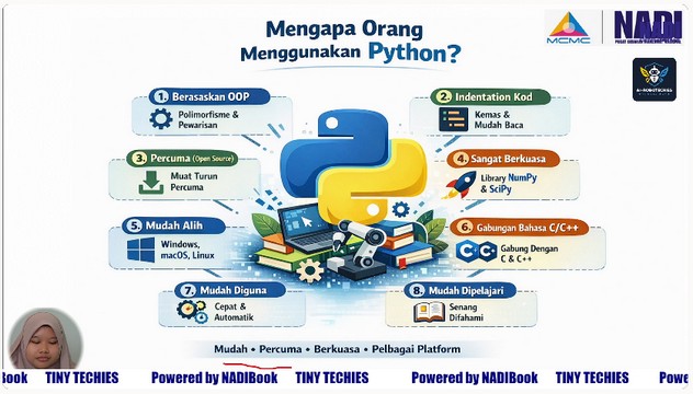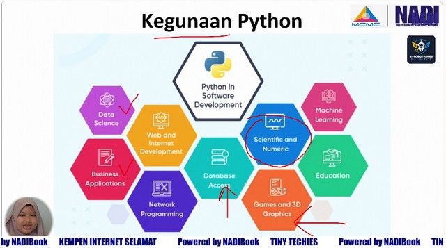 Sepanjang sesi, peserta didedahkan tentang mengapa Python digunakan secara meluas dalam bidang teknologi. Antaranya kerana Python merupakan bahasa pengaturcaraan yang mudah dipelajari, mempunyai sintaks yang ringkas dan sesuai untuk pemula. Selain itu, Python banyak digunakan dalam pembangunan aplikasi, automasi, analisis data, kecerdasan buatan serta pembangunan permainan dan laman web.