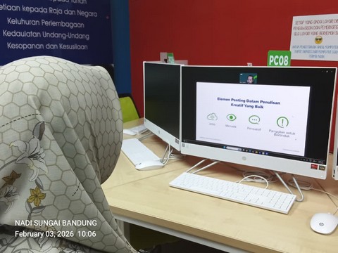 Pada 3 Februari 2026, seorang peserta telah mengikuti Webinar eKelas Usahawan Modul 3 yang bertajuk “AI untuk Mencipta Kandungan” yang diadakan secara dalam talian di NADI Sungai Bandung. Modul ini bertujuan memperkenalkan usahawan kepada penggunaan teknologi Kecerdasan Buatan (AI) dalam penghasilan kandungan digital yang kreatif, menarik dan berkesan.